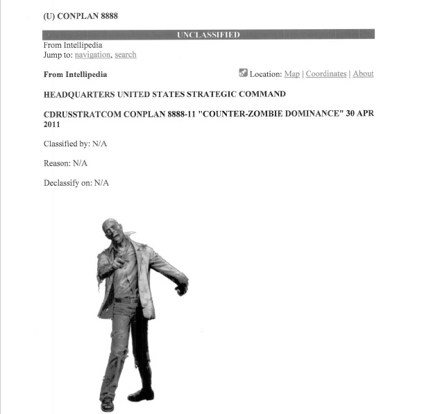 ABD Savunma Bakanlığı Pentagon'un zombilere karşı yazılı bir savunma planı olduğunu biliyor musunuz? Zombi istilasına karşı önlem almanın sadece filmlerde yaşandığını mı sanıyorsunuz? Pentagon'un CONOP 8888 adını verdiği zombilerle mücadele belgesi internete sızdırıldı ve bu resmi belge, oyun senaryolarına oldukça benziyor. (A2)